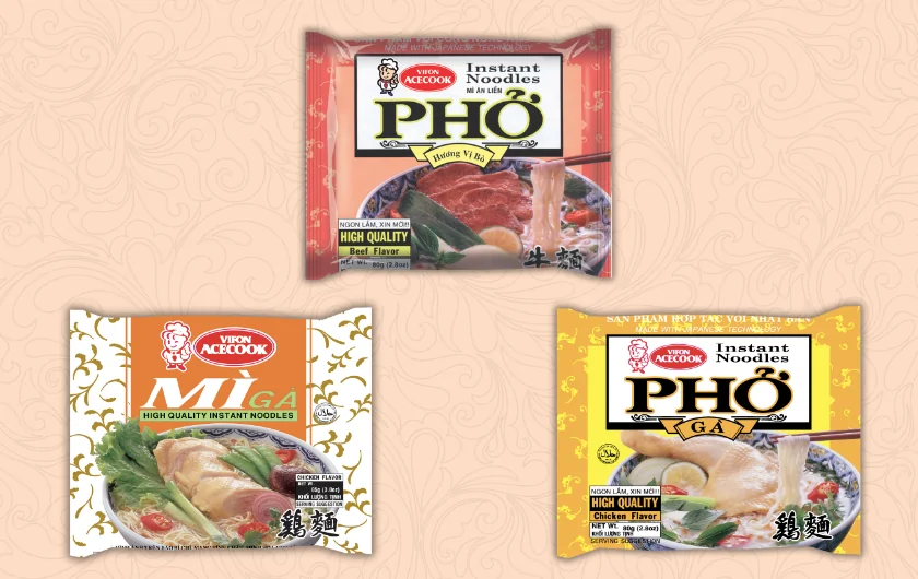 Mọi sản phẩm đều giữ tinh thần cốt lõi làm nên thương hiệu Acecook Việt Nam: vị ngon đậm đà, tiện lợi tối ưu, an toàn và đáng tin cậy, giàu dinh dưỡng, thân thiện với môi trường, góp phần giải quyết các vấn đề xã hội và nâng cao chất lượng sống – hướng tới mục tiêu thúc đẩy hạnh phúc và well-being toàn diện cho người tiêu dùng Việt.