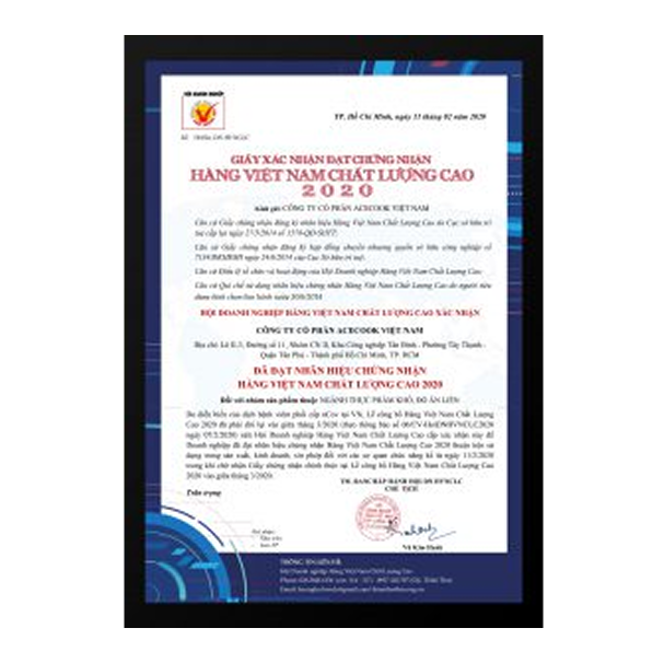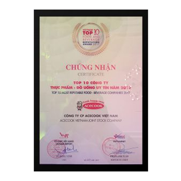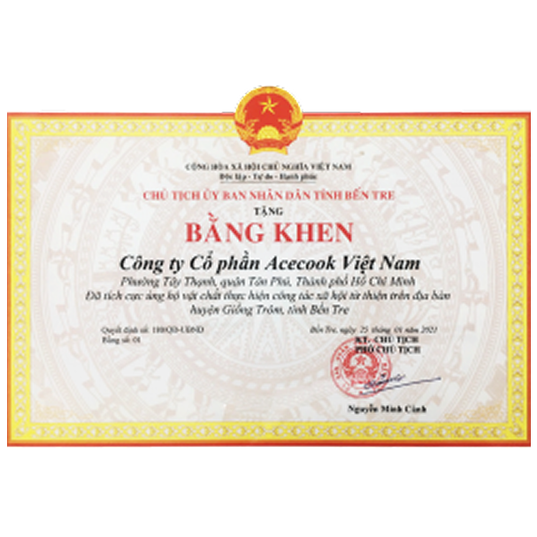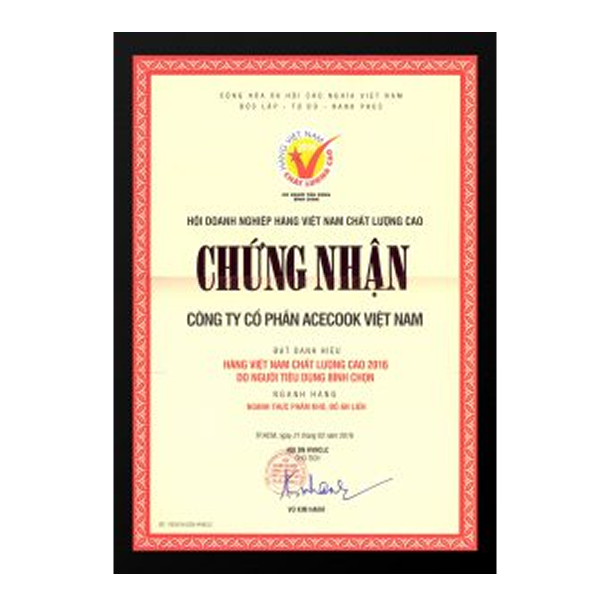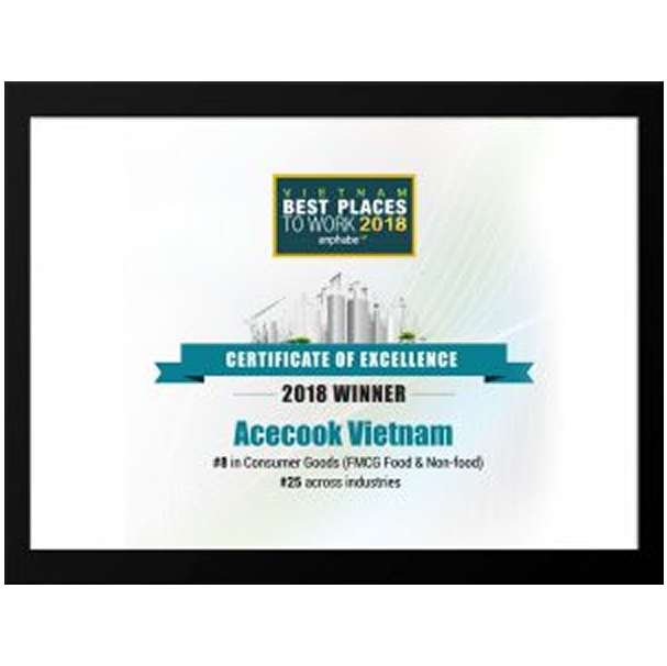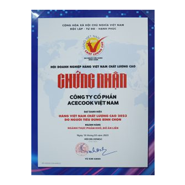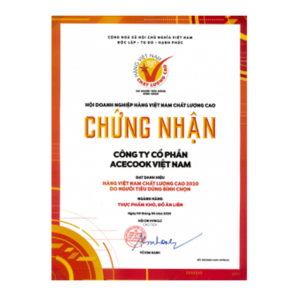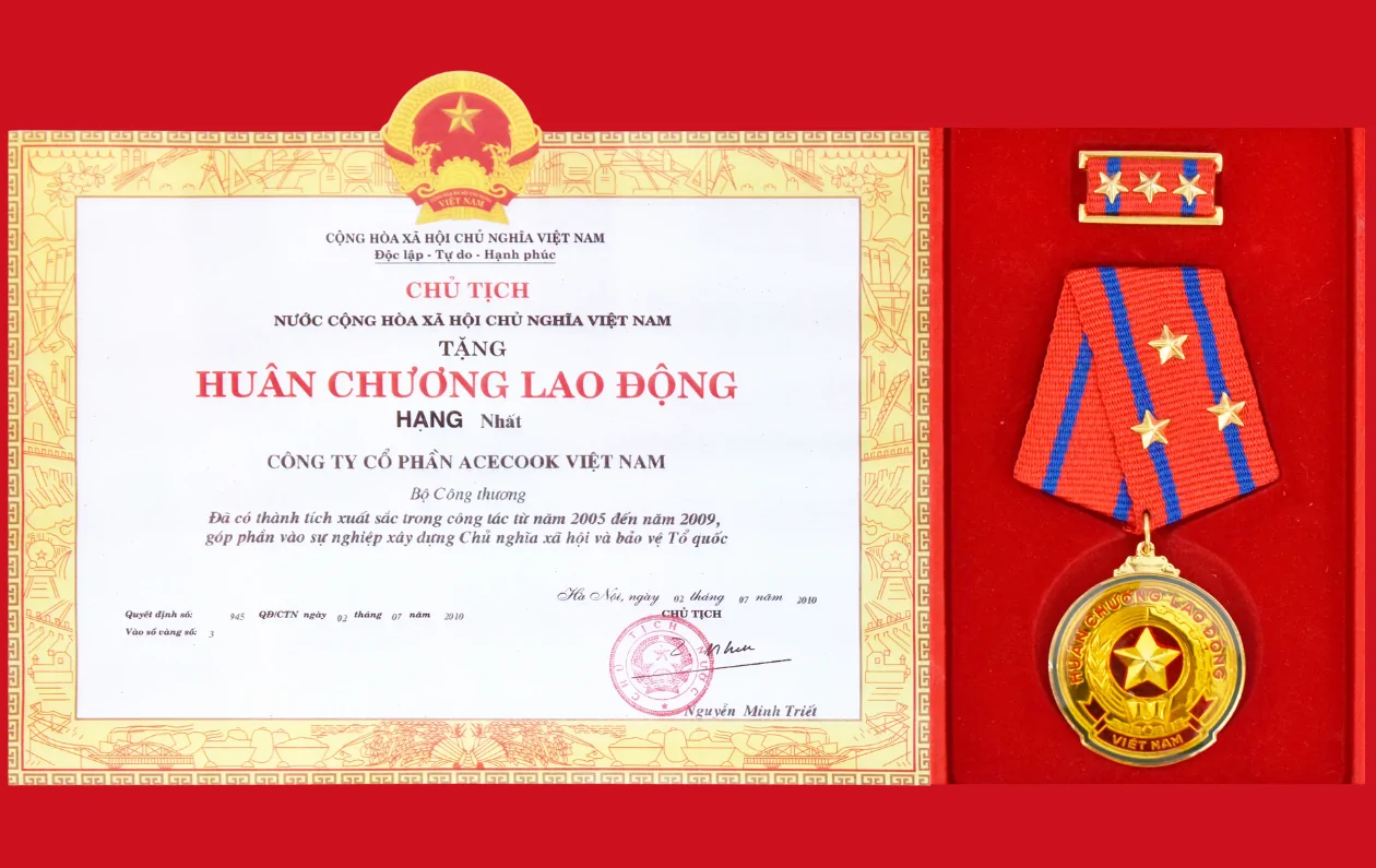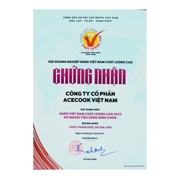 Trong suốt hành trình phát triển, Acecook Việt Nam đã vinh dự nhận được 116 danh hiệu và giải thưởng uy tín trong và ngoài nước. Đây là sự ghi nhận cho nỗ lực không ngừng trong việc mang đến những sản phẩm chất lượng và giá trị bền vững cho cộng đồng của công ty.