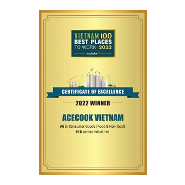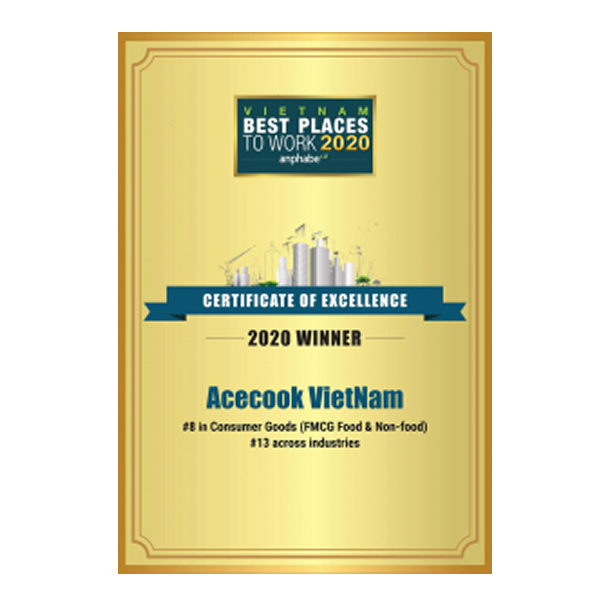 Acecook Việt Nam tự hào là người đồng hành tin cậy trên hành trình kiến tạo hạnh phúc cùng khách hàng, đối tác, xã hội và toàn thể cán bộ công nhân viên. Với công nghệ hiện đại từ Nhật Bản và quy trình quản lý chất lượng chuẩn quốc tế, mỗi ngày chúng tôi mang đến gần chục triệu bữa ăn ngon, tiện lợi, an toàn, dinh dưỡng và trọn vẹn niềm tin cho mọi gia đình, khẳng định vị thế là nhà sản xuất thực phẩm ăn liền hàng đầu Việt Nam.