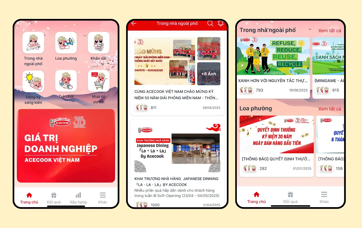Acecook Việt Nam đang ở cột mốc tròn 30 năm kể từ ngày chúng tôi bán sản phẩm đầu tiên (07/07/1995 - 07/07/2025). Đây không chỉ là dịp để Acecook nhìn lại hành trình phát triển đầy nỗ lực và tự hào, mà còn là thời điểm để khởi đầu một chương mới, với một tầm nhìn tham vọng hơn cho tương lai.