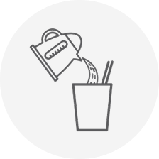 Pour boiling water in until reaching the line, close the lid and wait for 3 minutes.