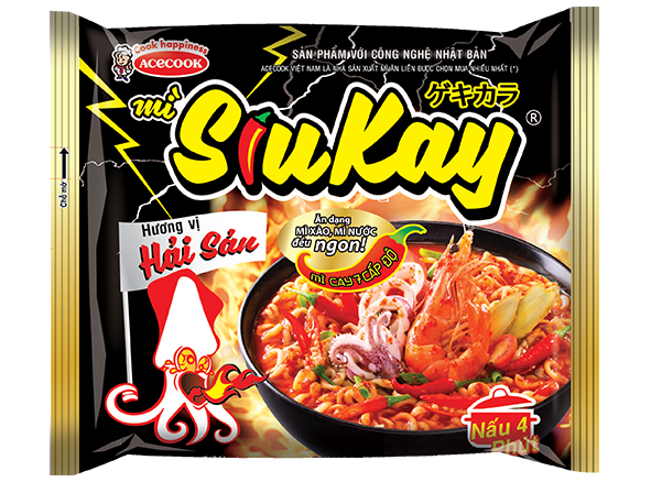 Siukay instant noodles, which can be cooked in just 4 minutes, feature a rich seafood soup perfectly intertwined with the kick of chili peppers, allowing a robust spiciness to permeate deep into the noodles.