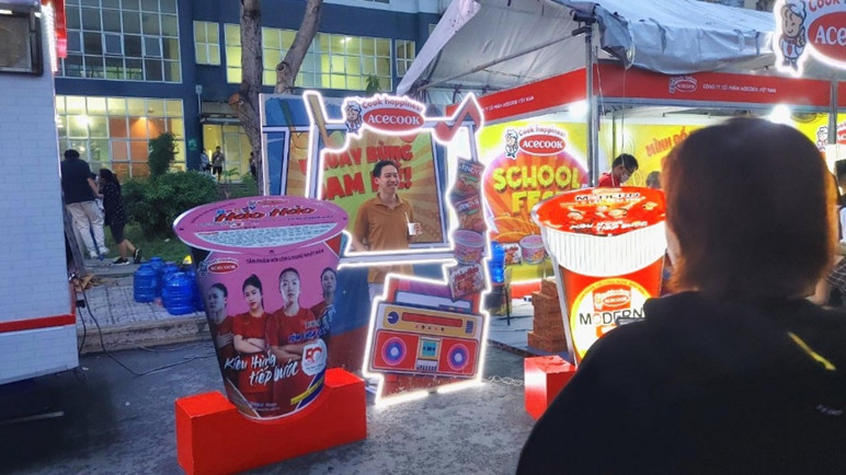 Hình: Gian hàng nhà tài trợ Acecook Việt Nam tại sự kiện School Fest 2023.
