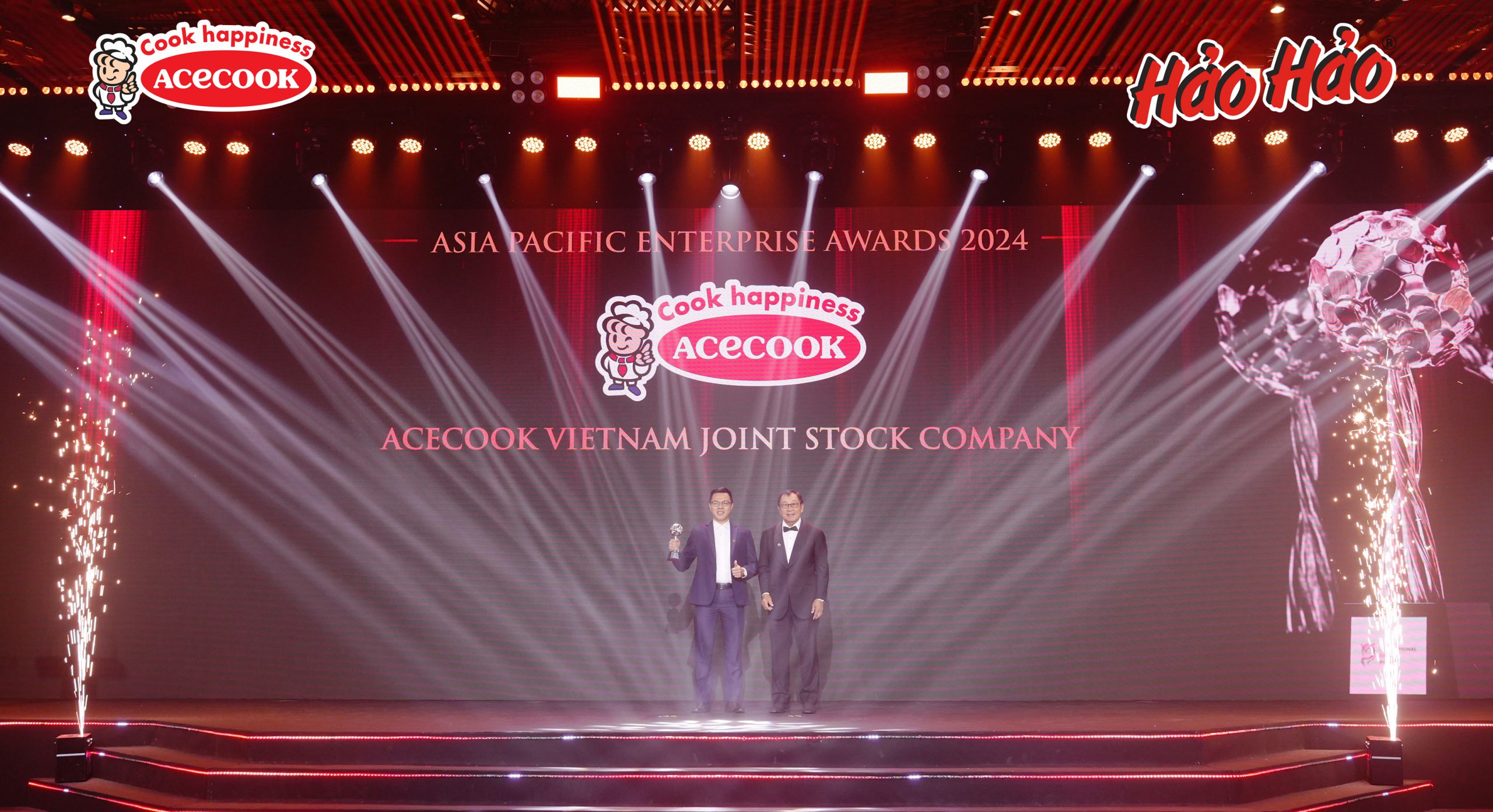 Vừa qua, Acecook Việt Nam vinh dự nhận giải thưởng “Doanh nghiệp xuất sắc Châu Á – Corporate Excellence Award” trong buổi Lễ trao giải Asia Pacific Enterprise Awards (APEA) 2024 do Hiệp hội Doanh nghiệp Châu Á tổ chức. Đồng thời, thương hiệu mì ăn liền Hảo Hảo cũng được vinh danh là “Thương hiệu truyền cảm hứng – Inspirational Brand Award”.