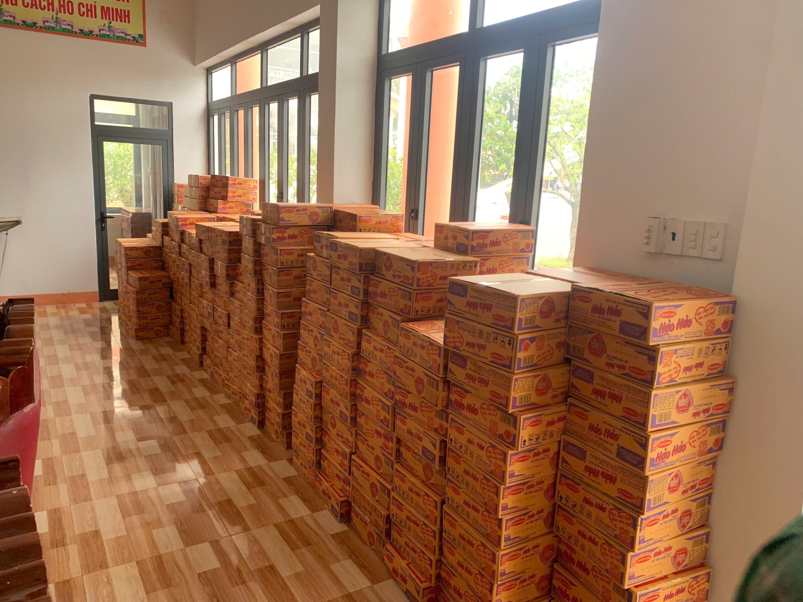 Những thùng mì Hảo Hảo được trao đến tay bà con vùng lũ