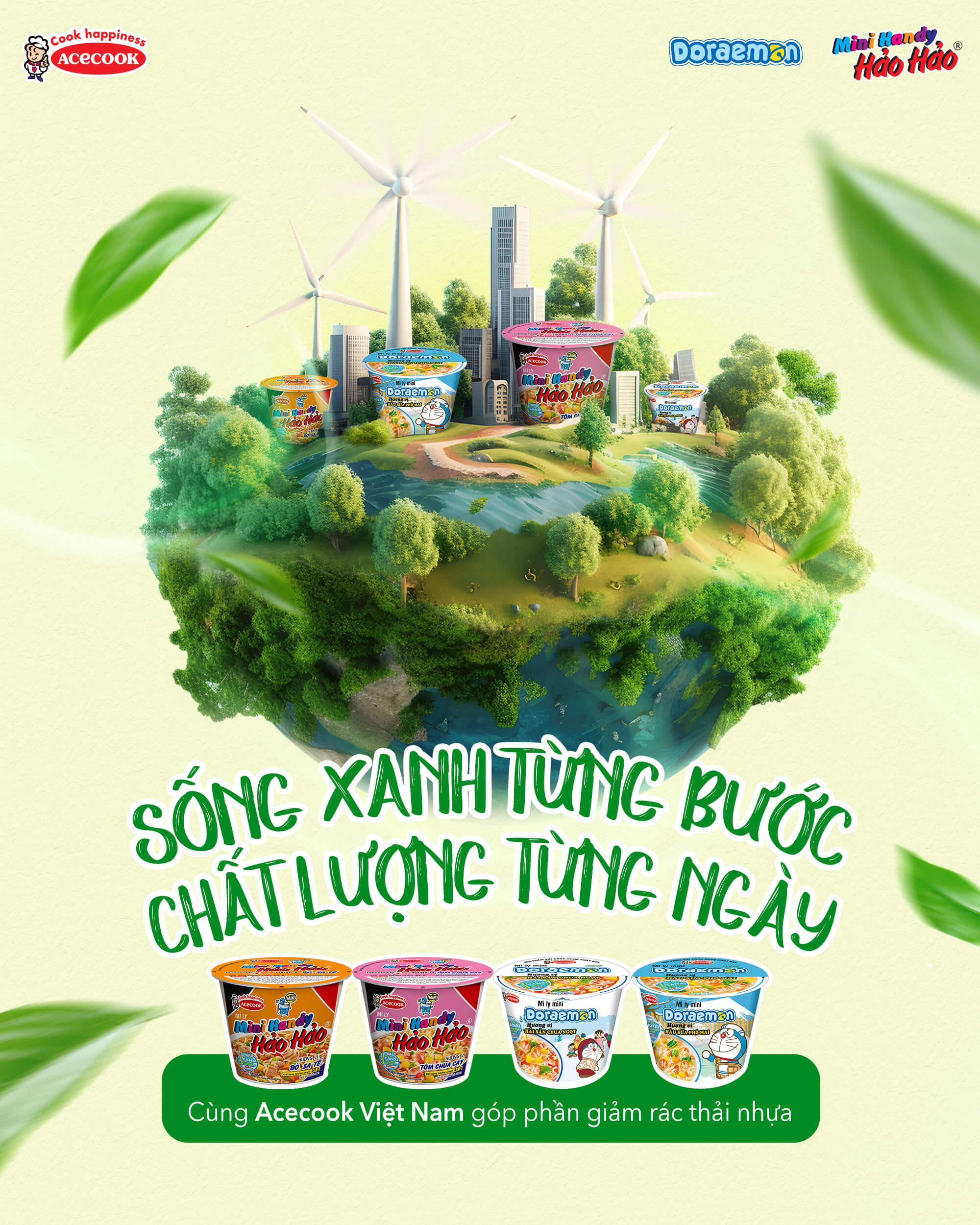 Nhận thức rõ trách nhiệm của doanh nghiệp theo Luật Bảo vệ Môi trường 2020, Acecook Việt Nam đã xây dựng và triển khai các mục tiêu phát triển bền vững. Trong năm 2024, công ty chính thức thực hiện bước cải tiến mới: loại bỏ nĩa nhựa trong hai sản phẩm Mì ly Mini Handy Hảo Hảo và Mì ly Mini Doraemon, góp phần giảm thiểu tác động đến môi trường. Đây là hành động thiết thực để hiện thực hóa những cam kết về phát triển xanh mà Acecook đã đặt ra.