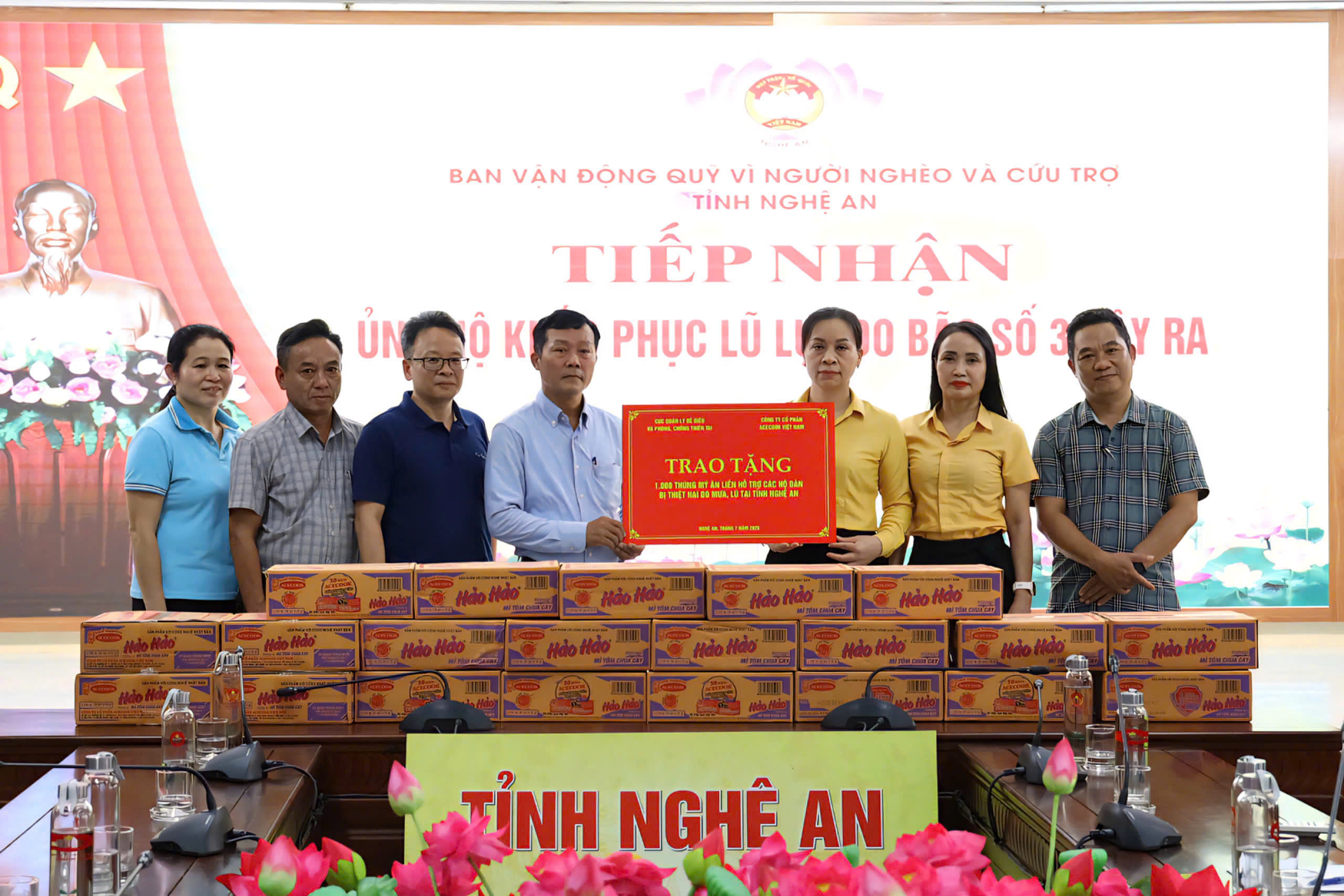 Công ty đã trao tặng 3.000 thùng mì đến các địa phương bị ngập lụt nặng, nhằm sẻ chia khó khăn và góp phần giúp người dân ổn định cuộc sống sau thiên tai.