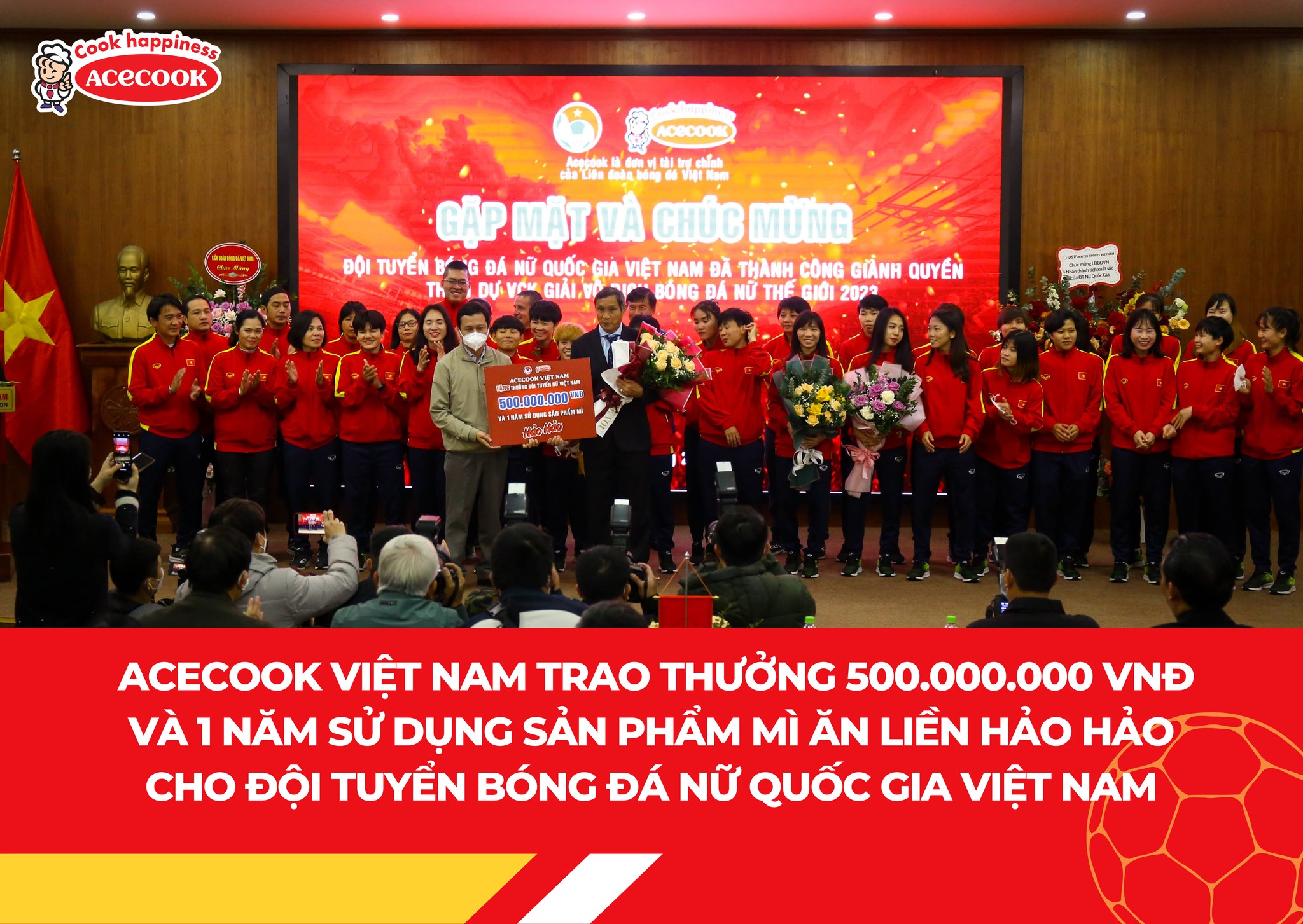 Để chúc mừng thành tích vang dội này của Đội tuyển bóng đá nữ Việt Nam và khích lệ tinh thần cho Đội tuyển, ngày 11/02 vừa qua Acecook Việt Nam đã quyết định trao tặng cho Đội tuyển bóng đá nữ quốc gia Việt Nam với số tiền thưởng là 500.000.000 VNĐ (Bằng chữ: Năm trăm triệu đồng) và 1 năm sử dụng mì Hảo Hảo cho mỗi thành viên đội bóng vì những thành tích xuất sắc này. Đồng thời, xin chúc đội tuyển đạt được những thành công vang dội hơn nữa trong hành trình tham gia Vòng Chung Kết FIFA World Cup 2023 sắp tới.