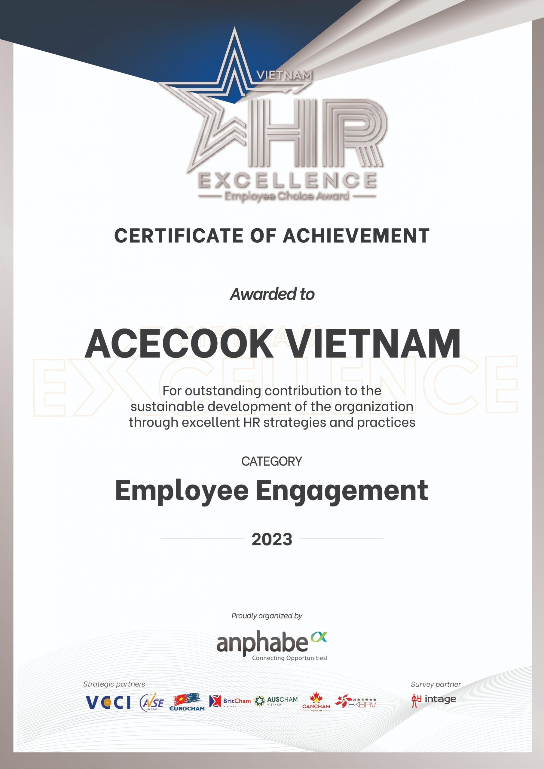Vừa qua, Công ty Cổ phần Acecook Việt Nam đã vinh dự nhận giải thưởng HR Excellence 2023 ở hạng mục Gắn kết nhân viên, thuộc chương trình chứng nhận VietNam Excellence® do Anphabe tổ chức.