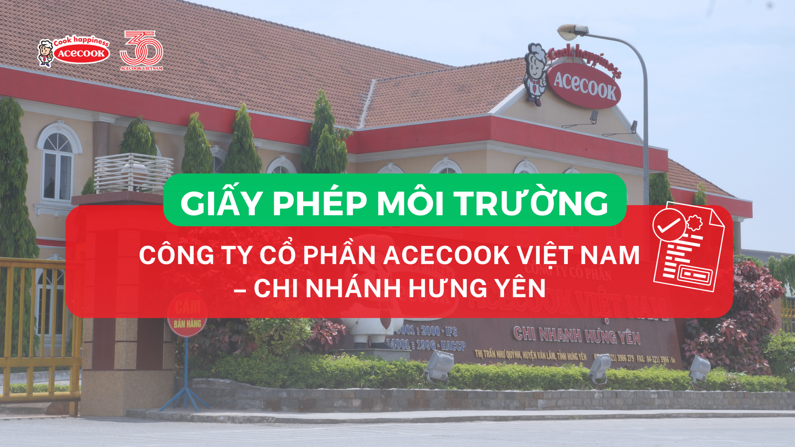 CÔNG BỐ GIẤY PHÉP MÔI TRƯỜNG CỦA CÔNG TY CỔ PHẦN ACECOOK VIỆT NAM – CHI NHÁNH HƯNG YÊN