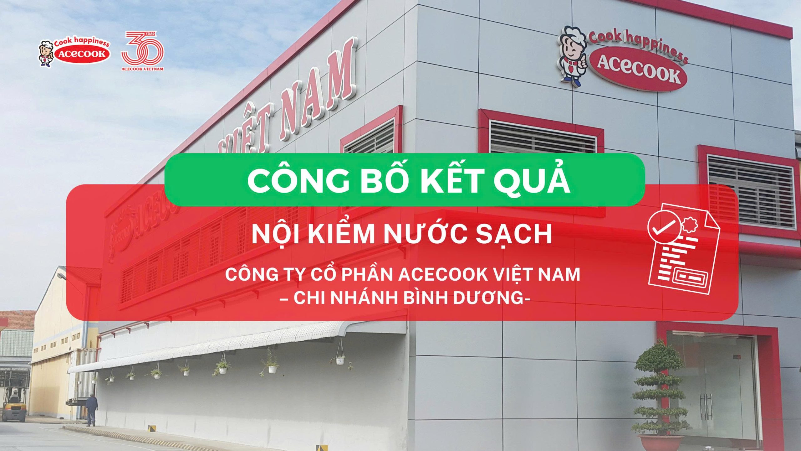 CÔNG BỐ KẾT QUẢ NỘI KIỂM NƯỚC SẠCH CỦA CÔNG TY CỔ PHẦN ACECOOK VIỆT NAM – CHI NHÁNH BÌNH DƯƠNG