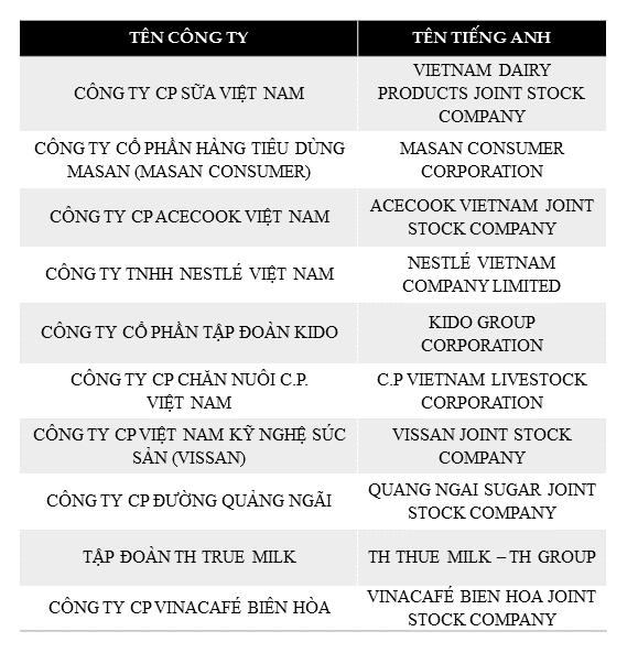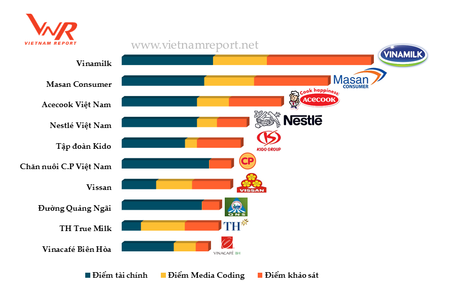 Nguồn: Vietnam Report, Top 10 Công ty uy tín ngành thực phẩm – đồ uống năm 2017, tháng 10/2017.