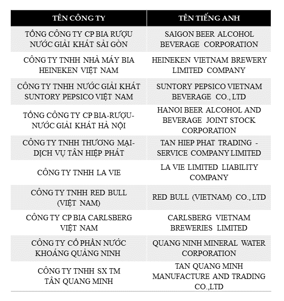 Danh sách Top 10 Công ty đồ uống uy tín năm 2017
