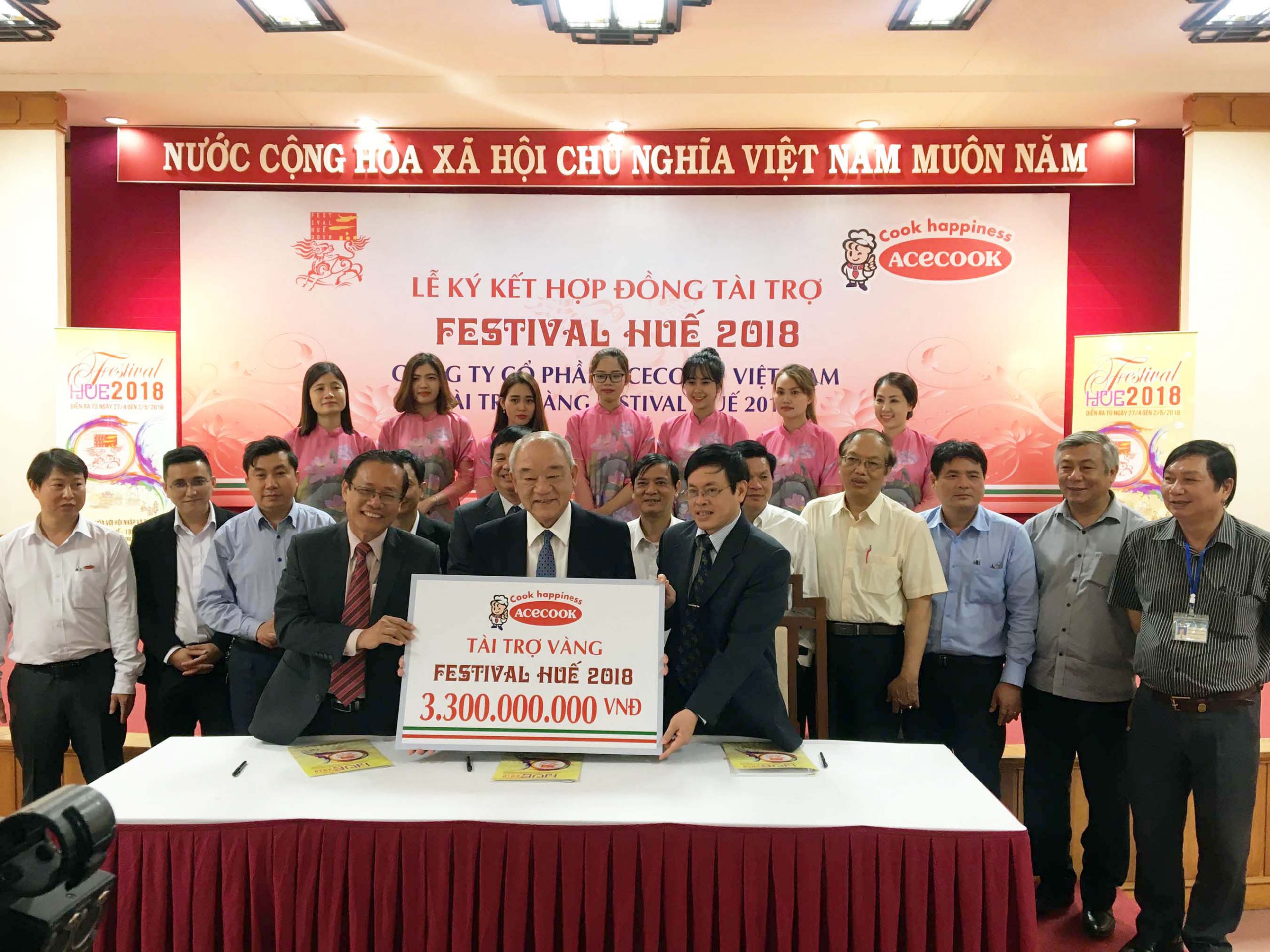 Festival Huế 2018 là sự kiện lễ hội văn hóa quy tụ những chương trình biểu diễn đặc sắc của hơn 50 đoàn nghệ thuật trong nước và quốc tế, Lễ hội Áo dài, Lễ hội Diều, Liên hoan ẩm thực quốc tế, Hội chợ thương mại quốc tế và hàng loạt các trưng bày, triển lãm với nhiều chủ đề khác nhau bao gồm: kiến trúc, mỹ thuật, ẩm thực… Các hoạt động mà Acecook Việt Nam tham gia chính là “Hội thảo khoa học Ẩm thực Cung đình và Dân gian Huế”, “Triển lãm 100 món ăn cung đình – dân gian Huế”, “Gala trải nghiệm Ẩm Thực Huế – Ẩm thực Việt” và “Liên quan ẩm thực Quốc Tế”. Chương trình dự kiến thu hút hơn 2,5 triệu lượt công chúng, trong đó có 400,000 lượt du khách tham gia.