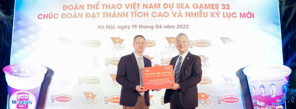 Vào ngày 19/04/2023 vừa qua, Công ty Acecook Việt Nam đã vinh dự tài trợ cho Lễ xuất quân của Đoàn Thể thao Việt Nam tại SEA Games 32 cùng những món quà cổ vũ tinh thần cho các vận động viên. Tiếp sức SEA Games lần này, Acecook Việt Nam mong nước nhà sẽ có thêm nhiều kỷ lục góp phần vào sự phát triển của thể thao Việt Nam.