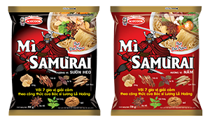 Mì không chiên ăn liền Samưrai, gồm hai hương vị Sườn heo và hương vị Nấm