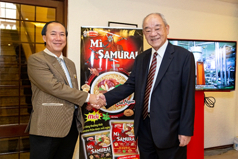 Ông Kajiwara Junichi – TGD Acecook Việt Nam và BS Lương Lễ Hoàng tại buổi hội thảo ra mắt mì Samưrai