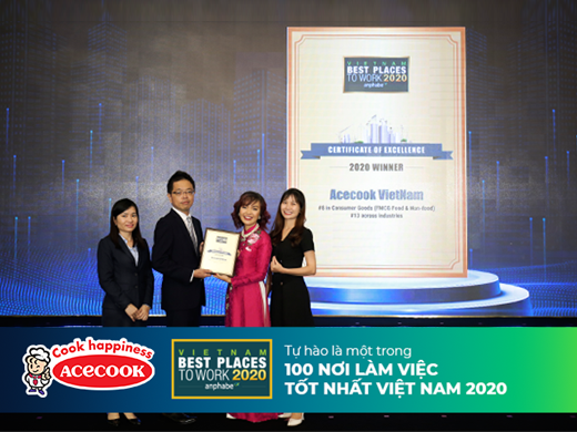 Công ty Acecook Việt Nam tiếp tục khẳng định sức hấp dẫn Thương hiệu nhà tuyển dụng với thành tích ấn tượng trong TOP 100 Nơi Làm Việc Tốt Nhất Việt Nam 2020