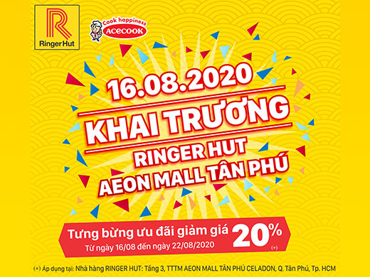 Tp.HCM, Chủ nhật, ngày 16 tháng 08 năm 2020, Nhà hàng Ringer Hut AEON MALL Tân Phú Celadon tại Số 30 Bờ Bao Tân Thắng, S