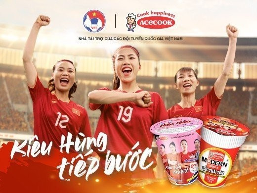 Acecook Việt Nam sử dụng hình ảnh các nữ tuyển thủ lên bao bì sản phẩm đồng thời ra TVC với thông điệp “Kiêu hùng tiếp b