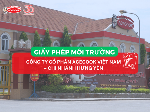 CÔNG BỐ GIẤY PHÉP MÔI TRƯỜNG CỦA CÔNG TY CỔ PHẦN ACECOOK VIỆT NAM – CHI NHÁNH HƯNG YÊN