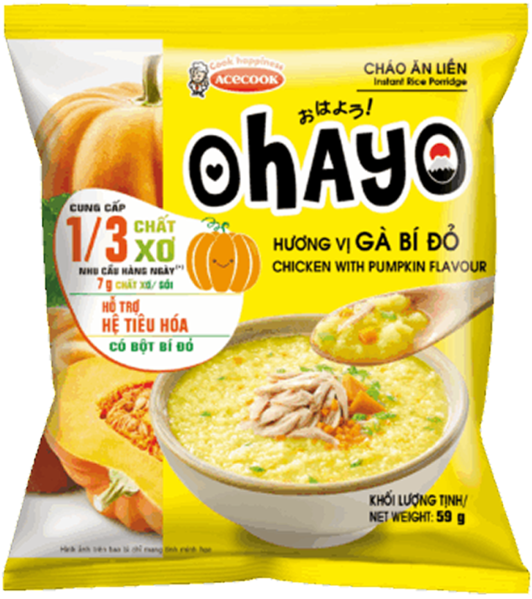 CÁC GÓI GIA VỊ: Chất xơ hoà tan inulin 130,42 g/kg, dầu cọ, muối, đường, chất điều vị (621, 631, 627), các gia vị (hành, tỏi, tiêu, ớt), cà rốt sấy, protein đậu nành, bột bí đỏ 6,69 g/kg, hương liệu tổng hợp, chất chống đông vón (551), chất thay thế muối (muối kali), hành lá sấy, tinh bột khoai mì, chiết xuất nấm men, bột chiết xuất gà 1,67 g/kg, chất ổn định (412), phẩm màu curcumin tự nhiên.