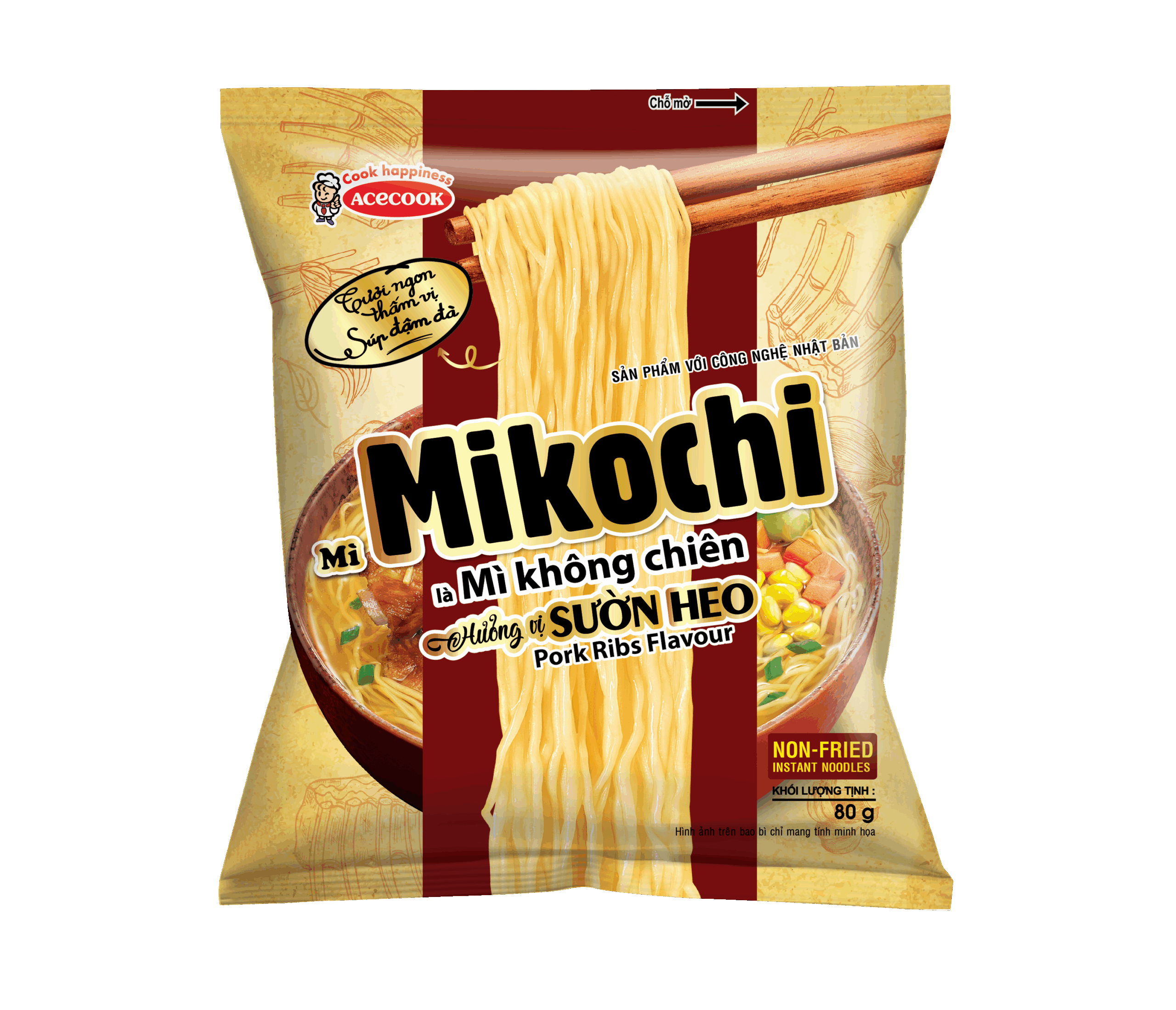 Sợi mì không chiên an toàn, dễ tiêu hóa, tốt cho sức khỏe nhưng vẫn ngon đậm đà từ sợi đến nước súp, nấu nhanh gọn và rất tiện như mì chiên. Với Mikochi bạn sẽ được trải nghiệm tinh tế với đẳng cấp của gói mì sức khỏe, chất lượng tối ưu , vị ngon đậm đà , nâng tầm bữa ăn Việt. Một sự kết hợp nâng bước vị thế về sản phẩm mì ăn liền không chiên.