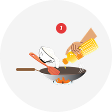 Cho dầu vào chảo, bật lửa vừa để dầu nóng, cho cơm vào và đảo trong khoảng 1 phút