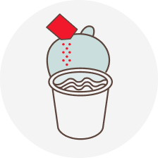 Mở nắp ly đến vạch có mũi tên, cho gói gia vị vào ly.