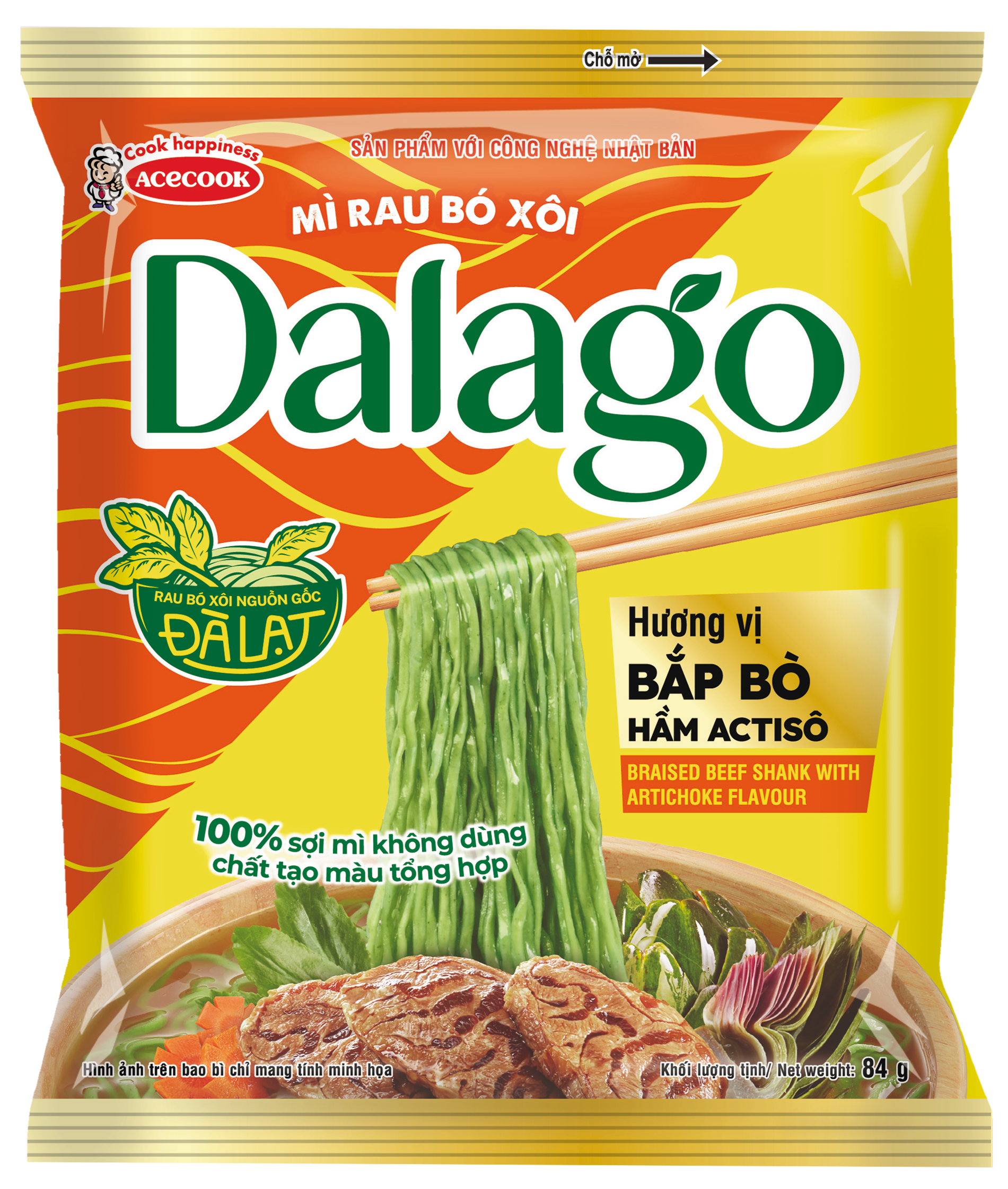 Mì rau bó xôi Dalago hương vị Bắp bò hầm Actiso