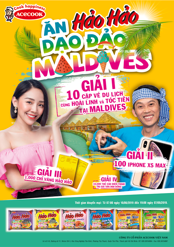 Để đáp lại sự đồng hành, yêu thương của Người tiêu dùng Việt Nam dành cho thương hiệu Hảo Hảo trong suốt thời gian qua, Hảo Hảo chính thức khởi động Chương trình khuyến mại dành cho Người tiêu dùng với tên gọi “ĂN HẢO HẢO, DẠO ĐẢO MALDIVES” từ ngày 10 tháng 06 năm 2019 trên toàn quốc.