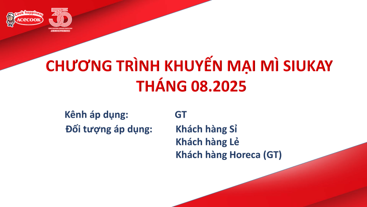 Chương trình Nhóm sản phẩm Acecook Khuyến mại – Tháng 8.2025