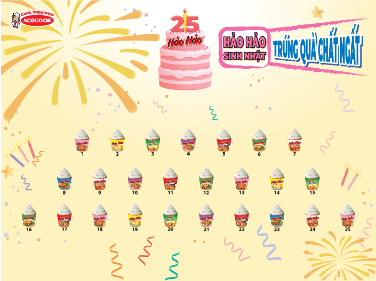 1. Tên chương trình khuyến mại: Hảo Hảo Sinh Nhật, Trúng Quà Chất Ngất2. Hàng hóa, dịch vụ được khuyến mại:Tên sản phẩmQ