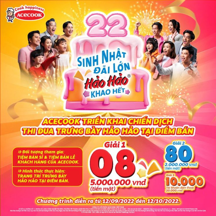 Để tri ân sự tin dùng của người tiêu dùng, ngày 01 tháng 09 năm 2022, công ty Acecook Việt Nam chính thức mang đến mọi