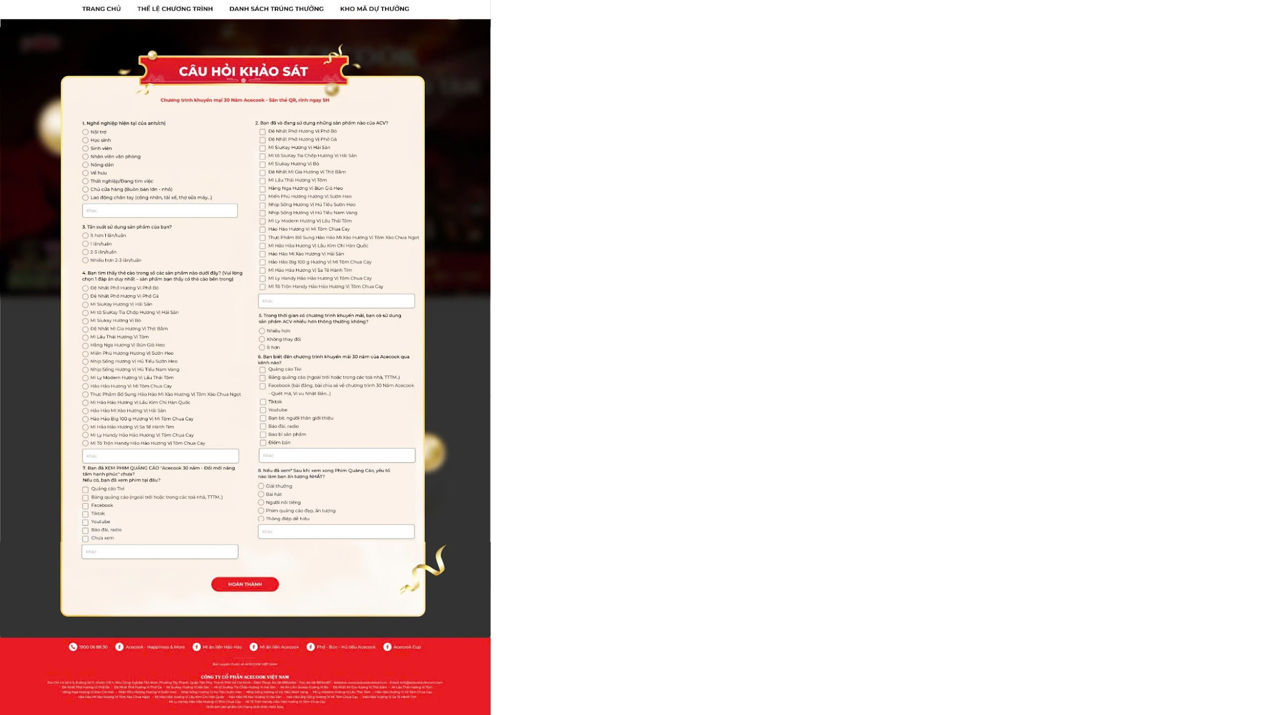 a. Tham gia khảo sát tại website “https://khuyenmai30nam.acecookvietnam.vn”: