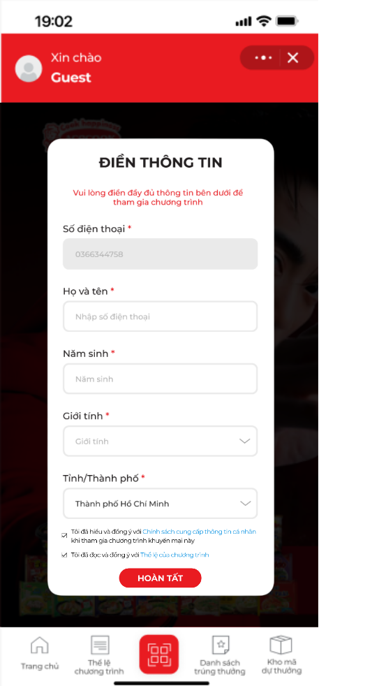 b. Hệ thống ngay lập tức hiển thị màn hình để khách hàng đăng nhập nếu đã đăng ký tài khoản tham gia chương trình khuyến mại trước đó hoặc đăng ký tài khoản nếu khách hàng chưa đăng ký tài khoản tham gia chương trình (tài khoản tham gia chương trình khuyến mại sau đây gọi là “Tài Khoản Khách Hàng”).