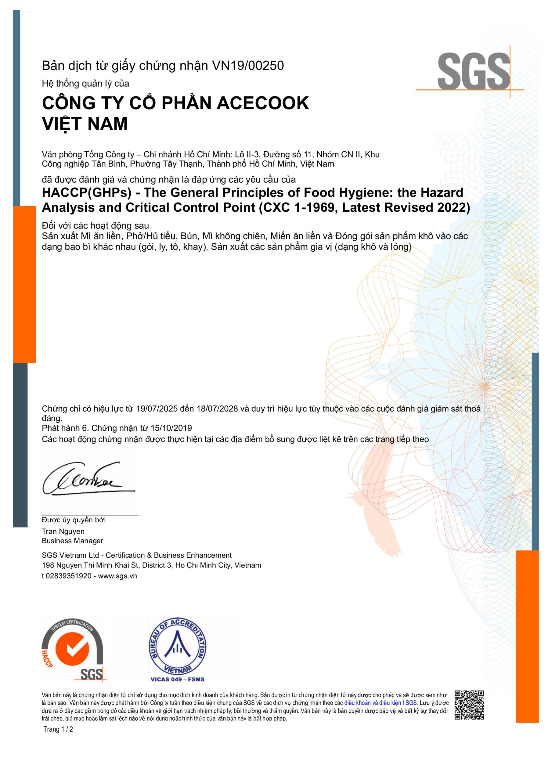 Đáp ứng các quy định của Pháp luật Việt Nam và các thị trường xuất khẩu.