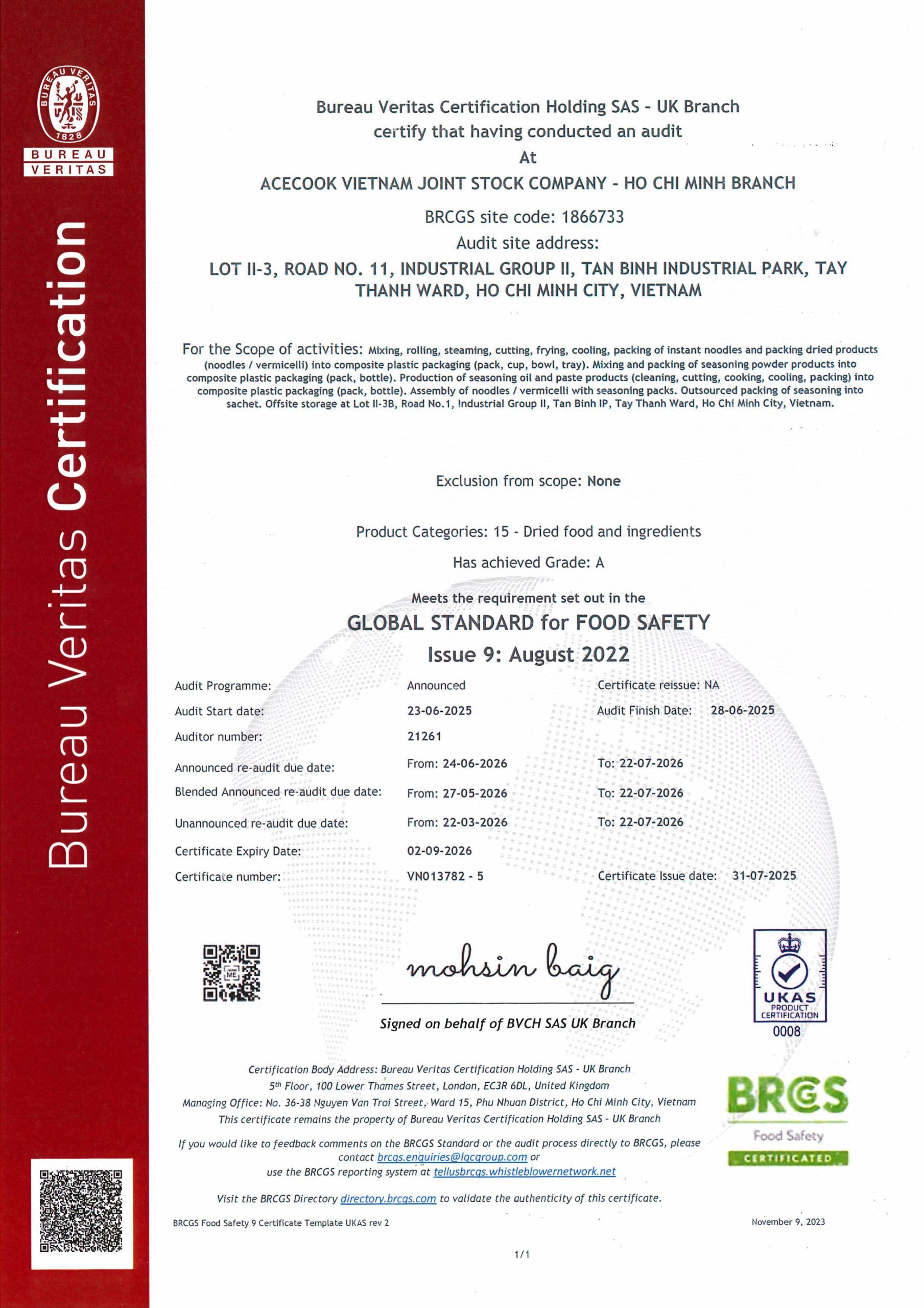 - Tiêu chuẩn toàn cầu về An toàn thực phẩm BRCGS